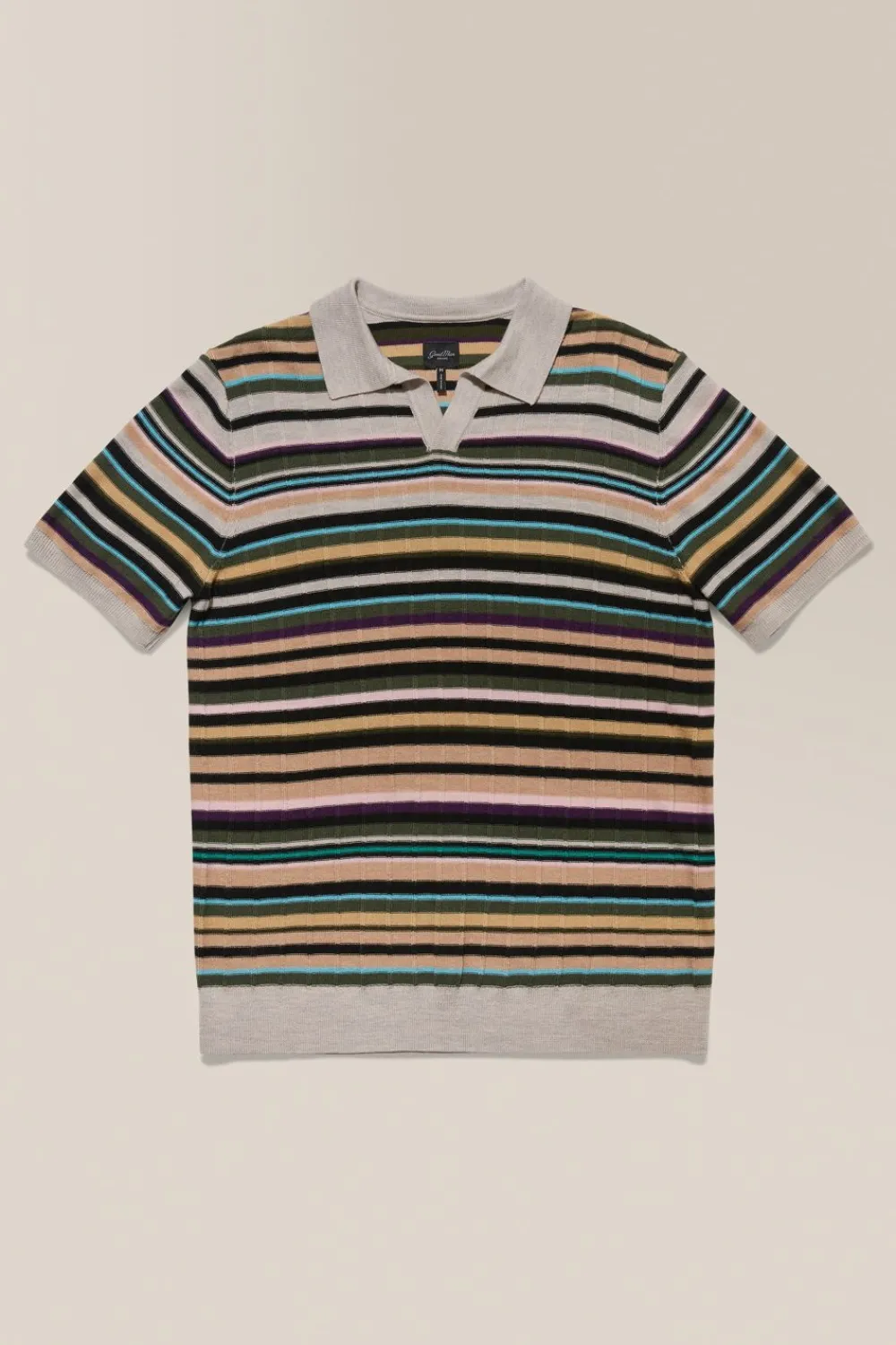 Luxurious Textured Polo Shirt In Fine Gauge, Lightweight Merino Wool Knit With Retro-Inspired Johnny Collar And Ribbed Collar, Arm Bands And Hem. A Truly Versatile Shirt That Works Under A Blazer, With Jeans Or Trousers.