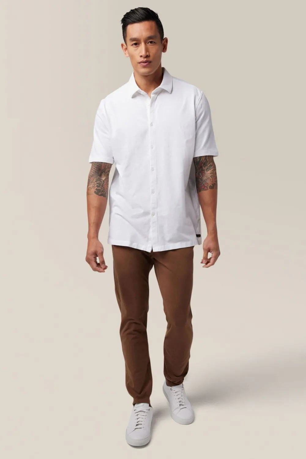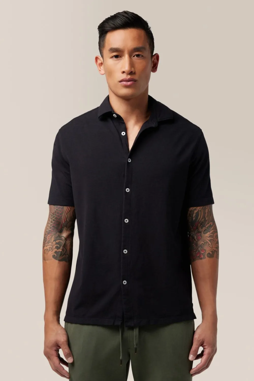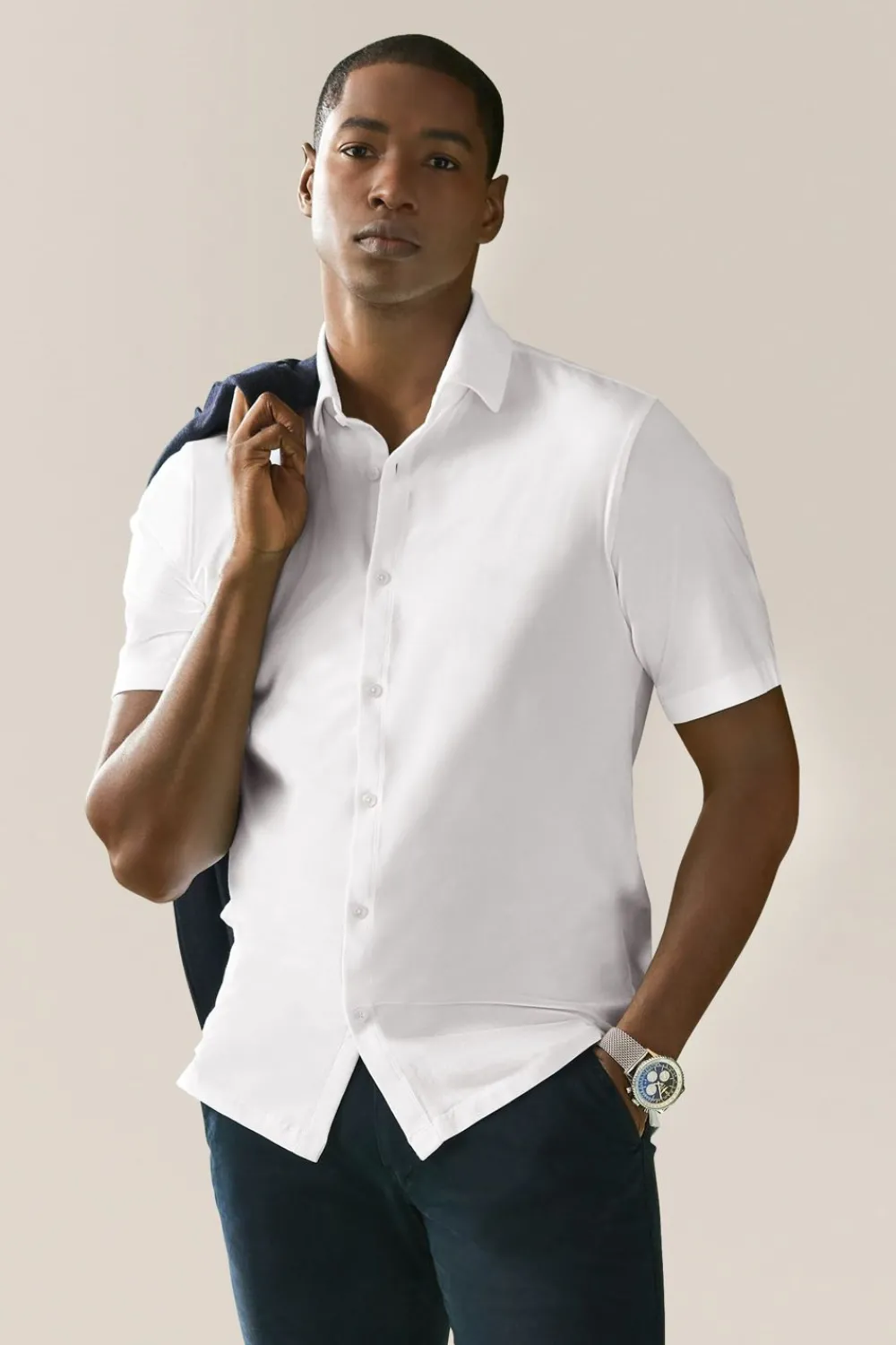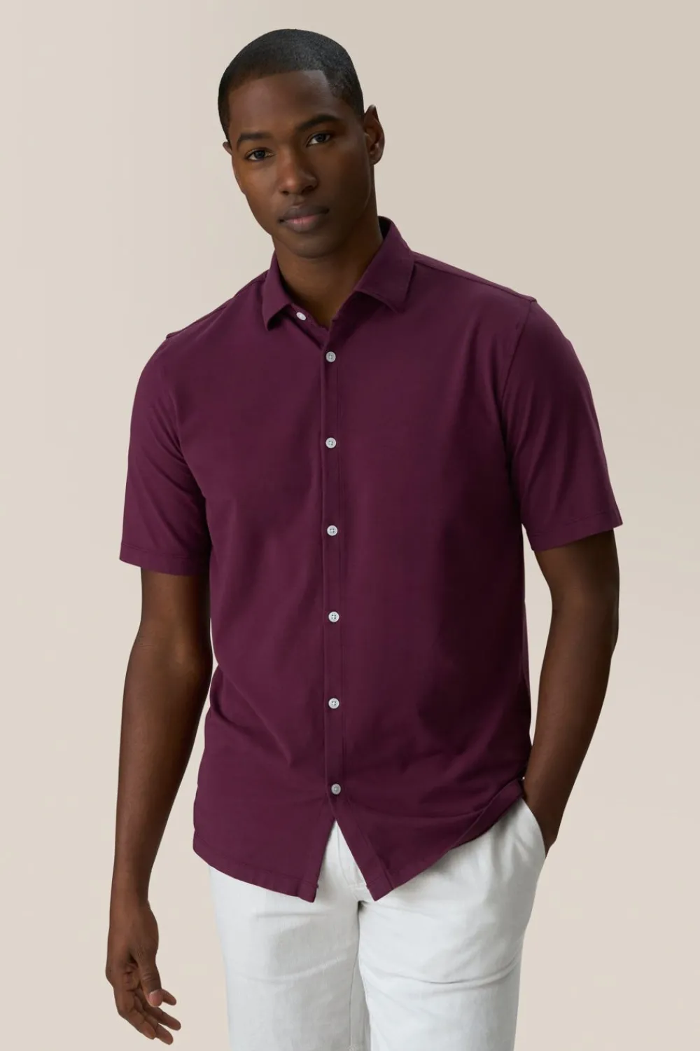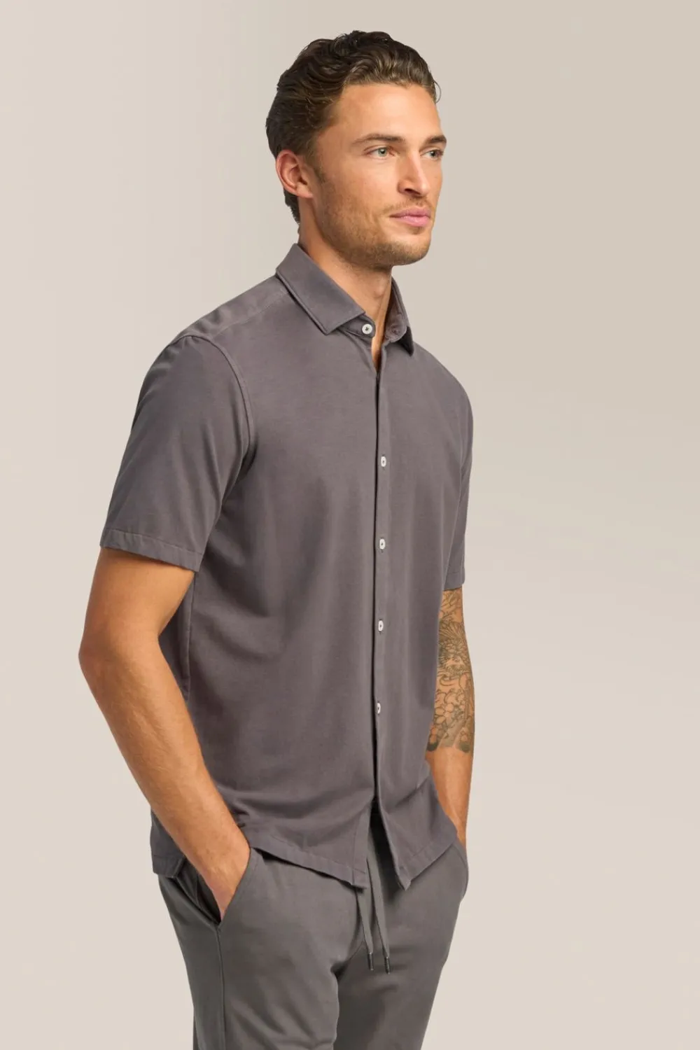 ElevatE A Wardrobe Cornerstone With A Relaxed Yet Polished Fit And Flexible Jersey Made With Responsibly Sourced Cotton. OpTimAl Comfort, Wear-Anywhere Versatility.