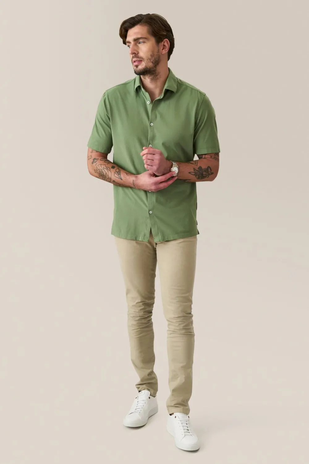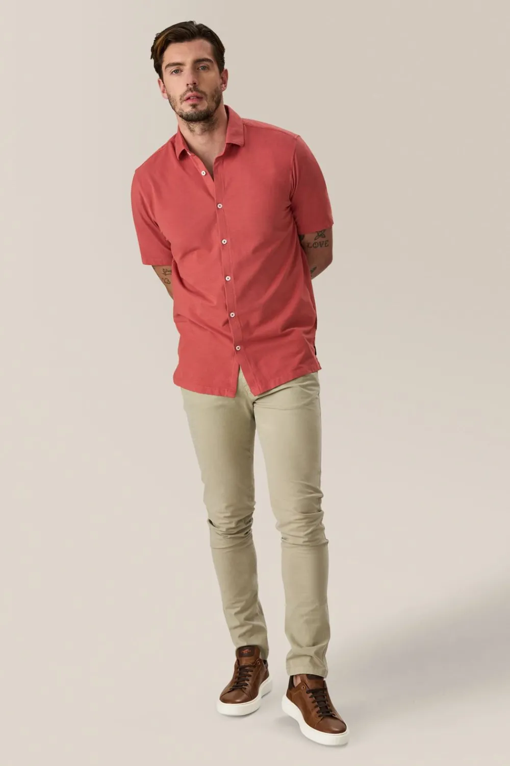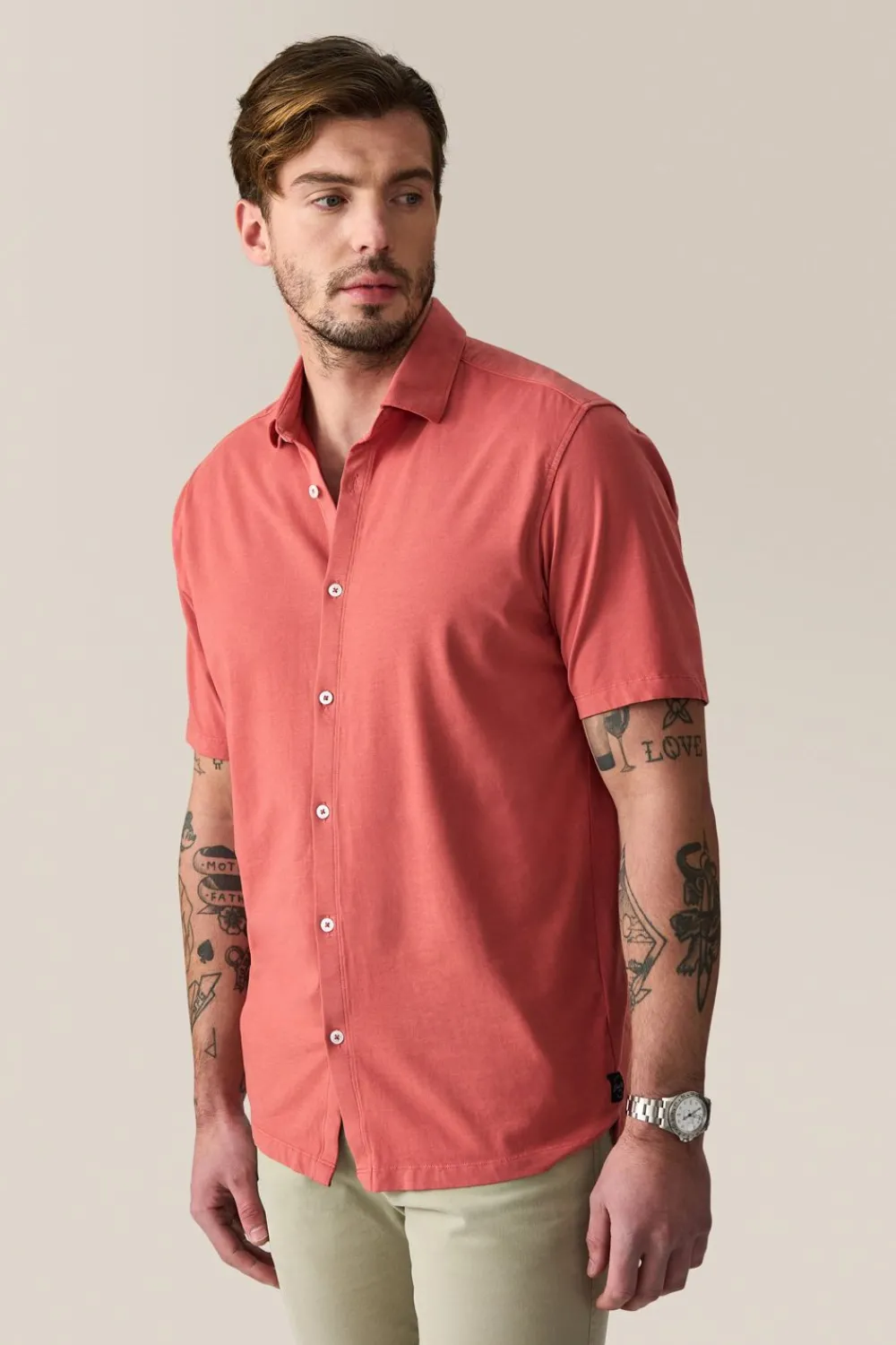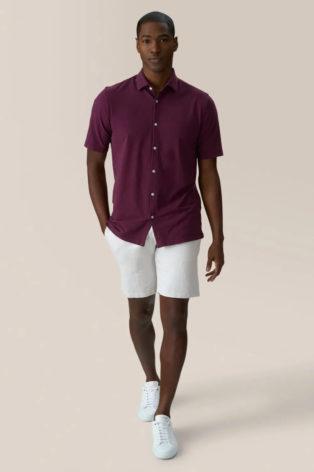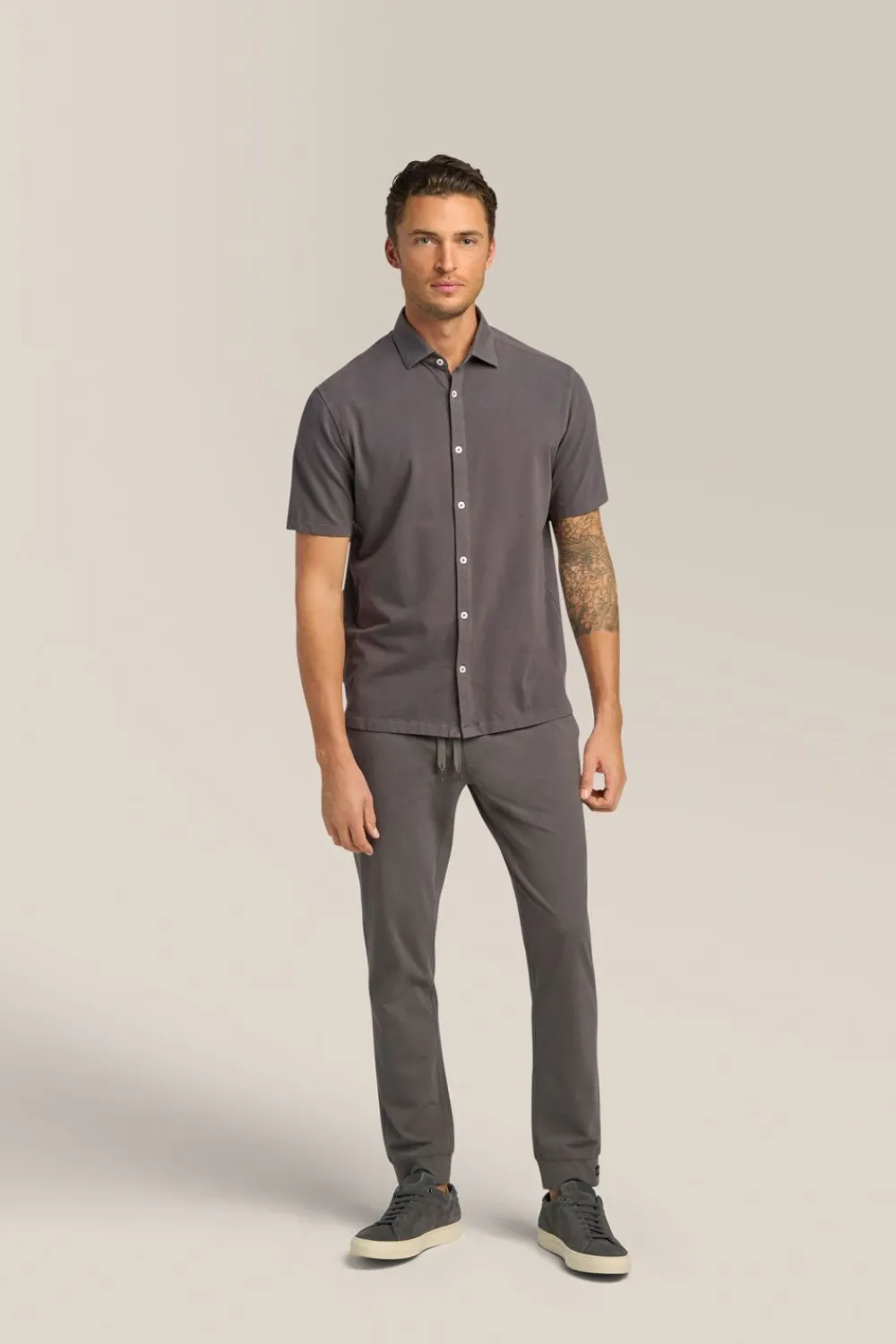 ElevatE A Wardrobe Cornerstone With A Relaxed Yet Polished Fit And Flexible Jersey Made With Responsibly Sourced Cotton. OpTimAl Comfort, Wear-Anywhere Versatility.