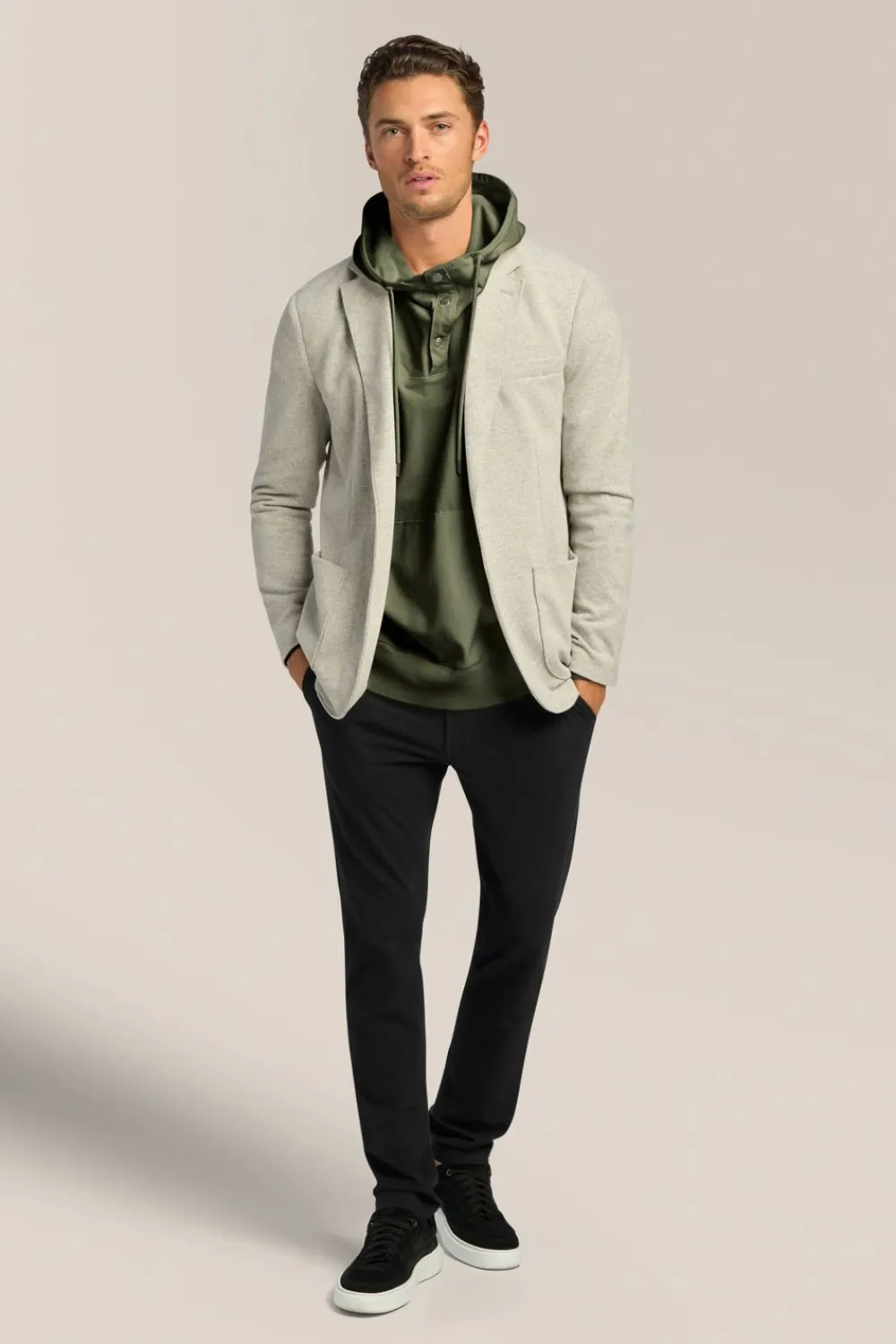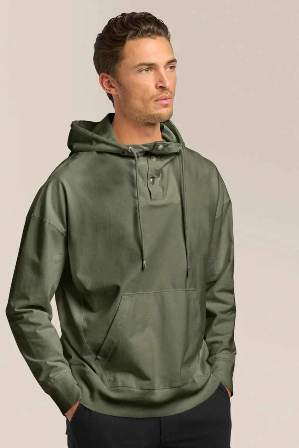 An All-Season, Essential Layering Piece With Sporty Anorak Styling. Lightweight Sweatshirt In Flex Pro Jersey With Drawstring Hood And Front Kangaroo Pocket.