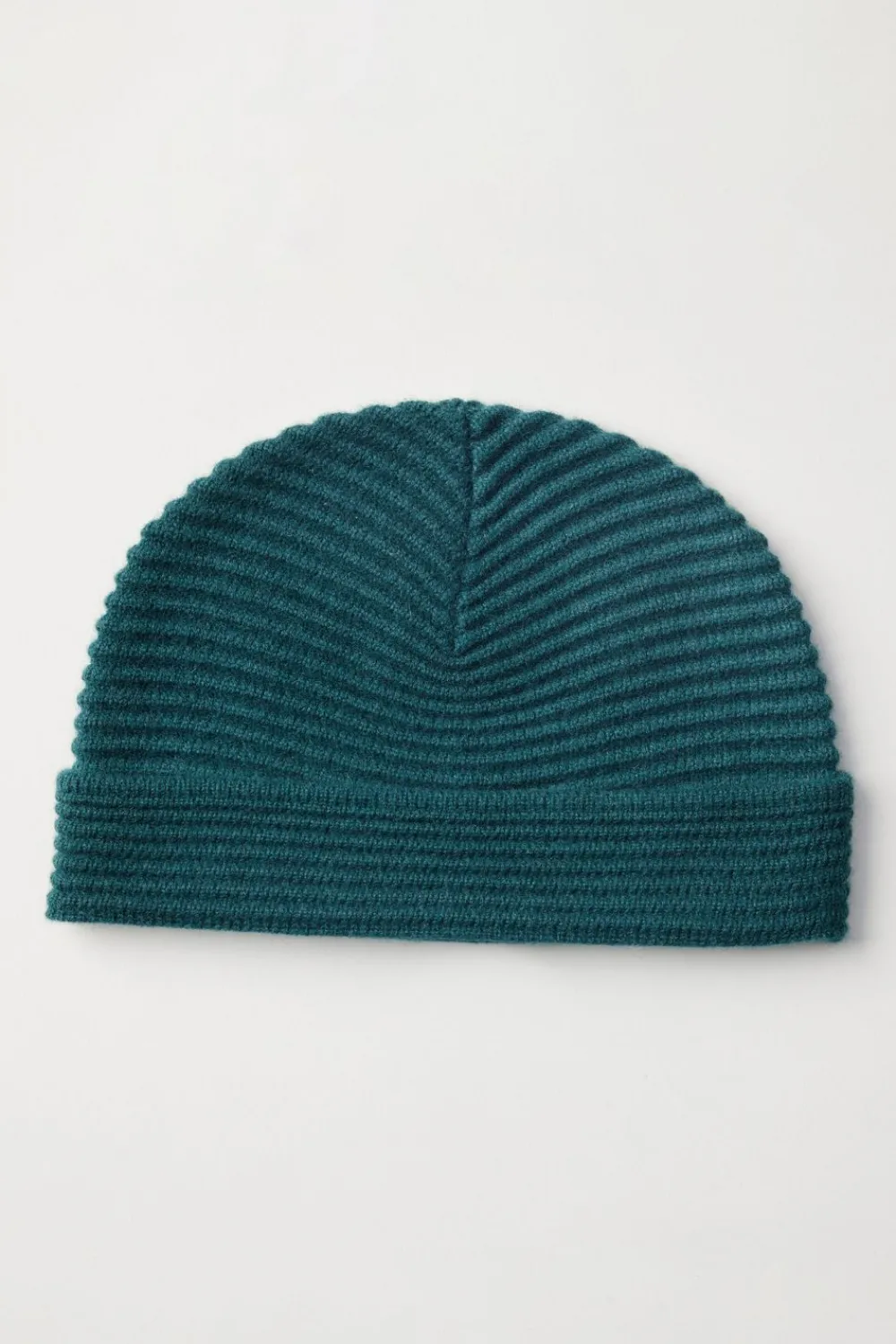 Lofty, Ribbed Knit Beanie In Plush Traceable Wool And Recycled Cashmere With Fold-Over Brim. Our 100% Recycled Cashmere Releases 80% Less Carbon And Uses 48% Less Water Compared To Virgin Cashmere.