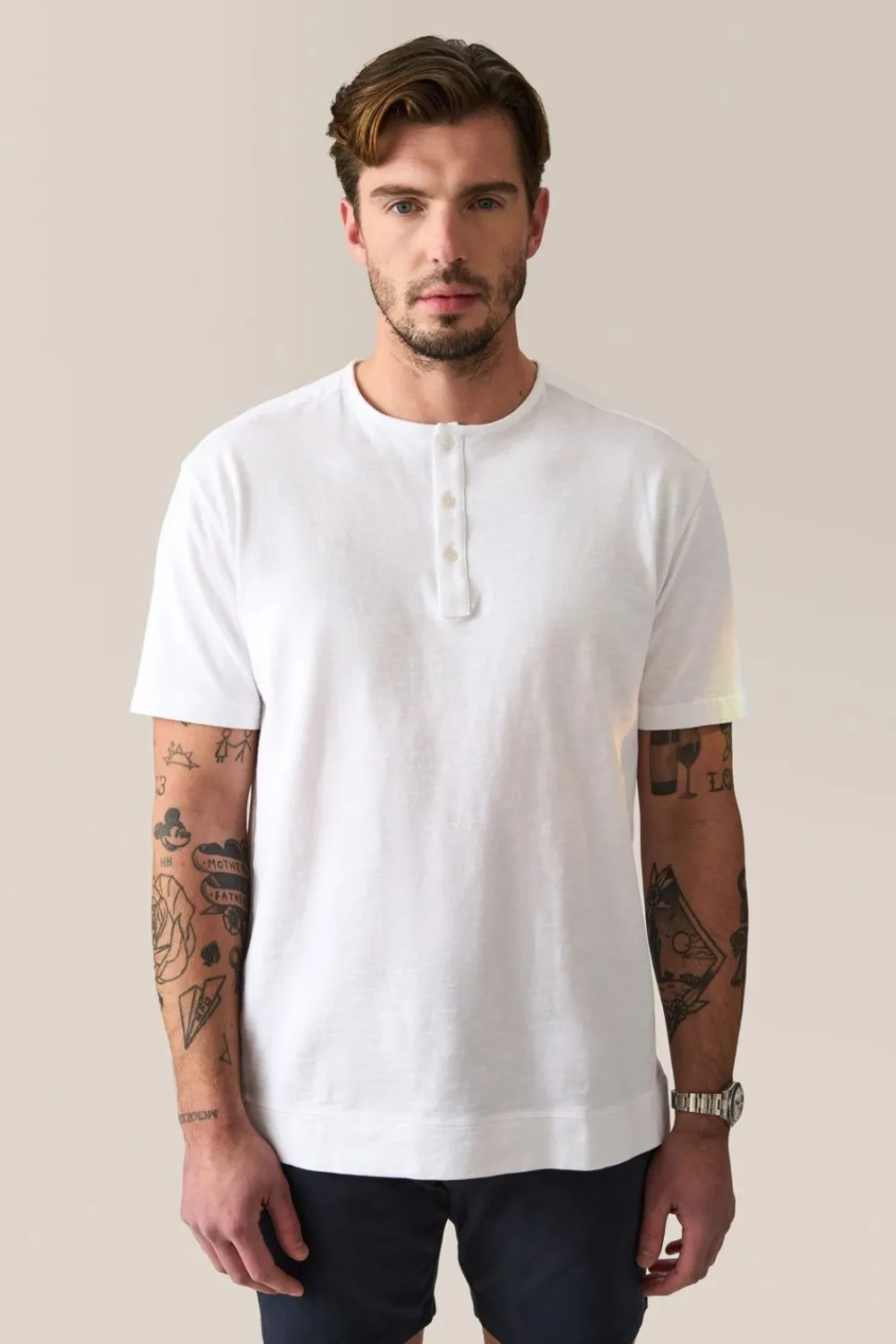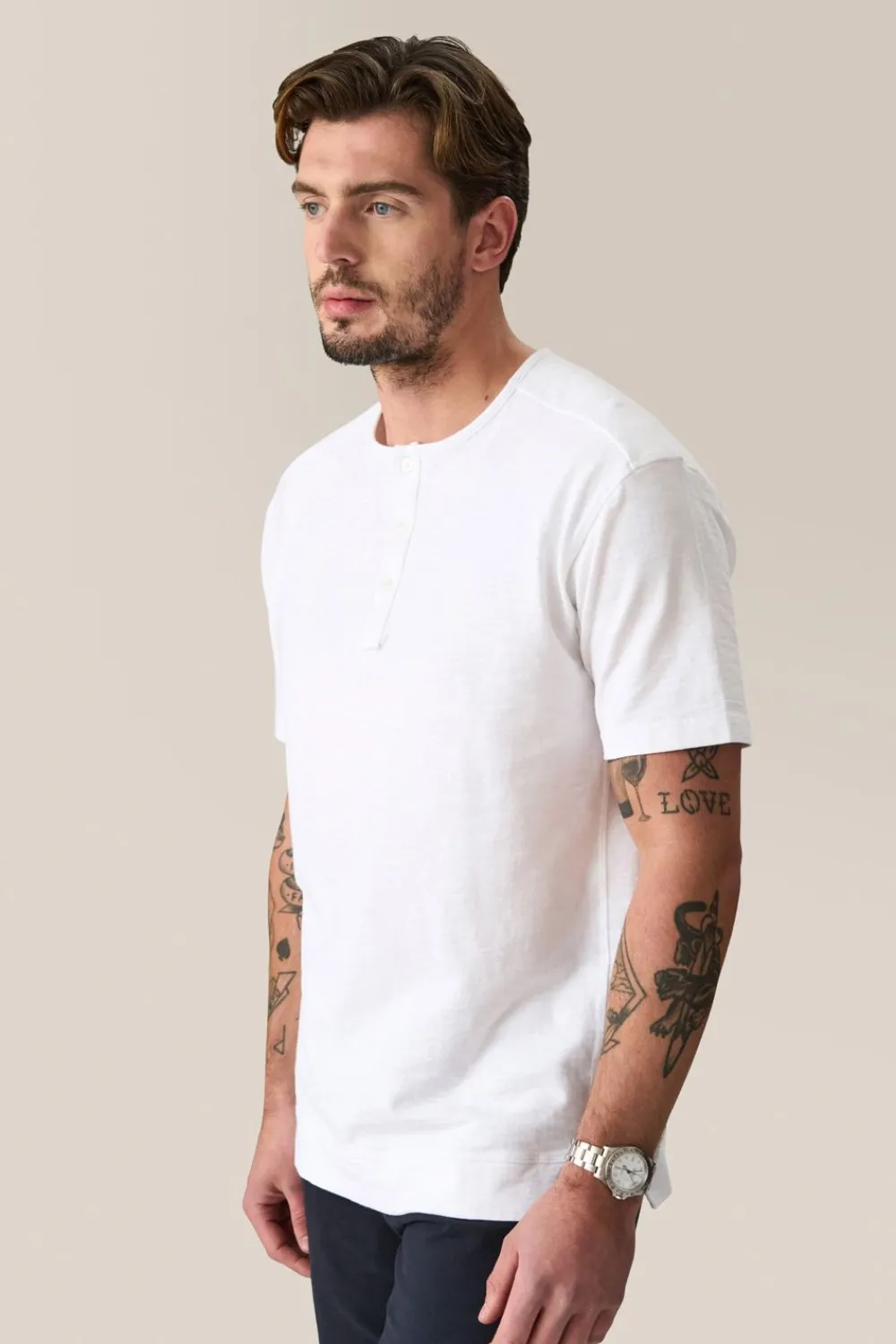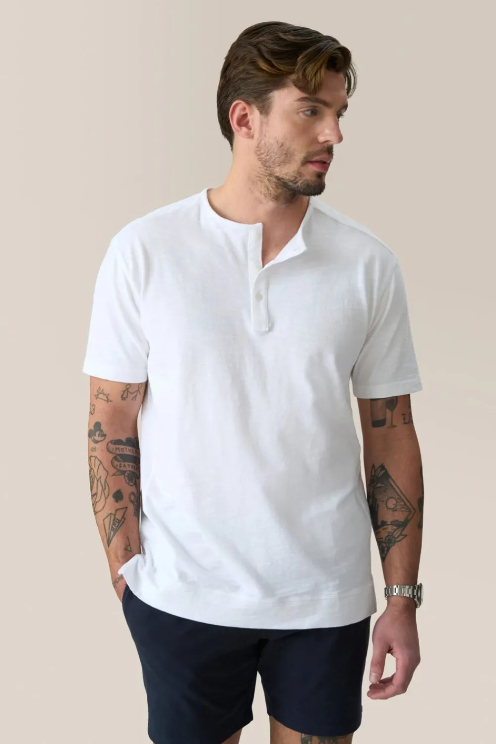 When You Want Something More Than A Simple Tee – A Short Sleeve Henley Tee In Soft, Textured Slub Cotton With Sporty Raglan Sleeves And Relaxed Fit, Fluid Fit.