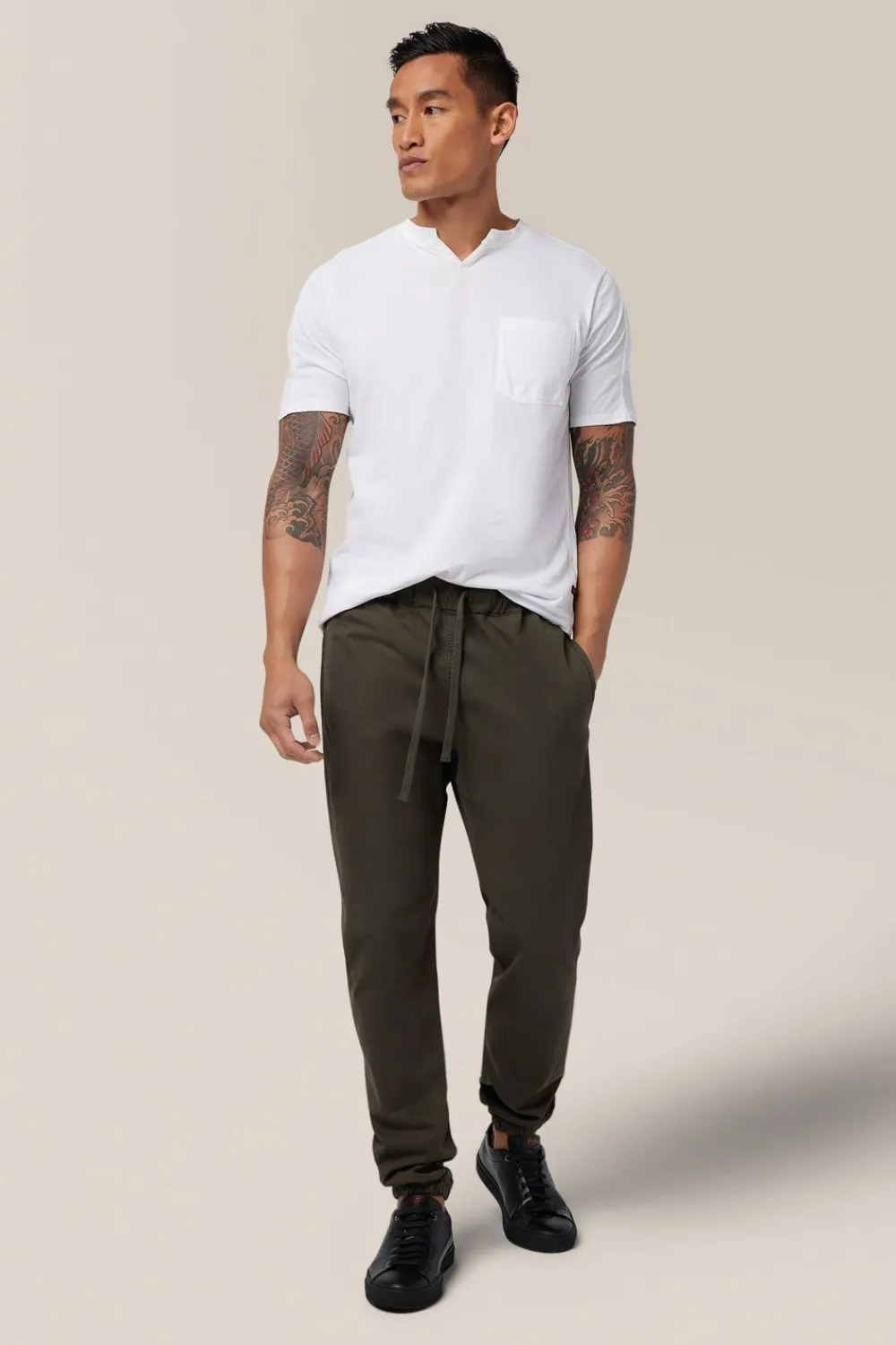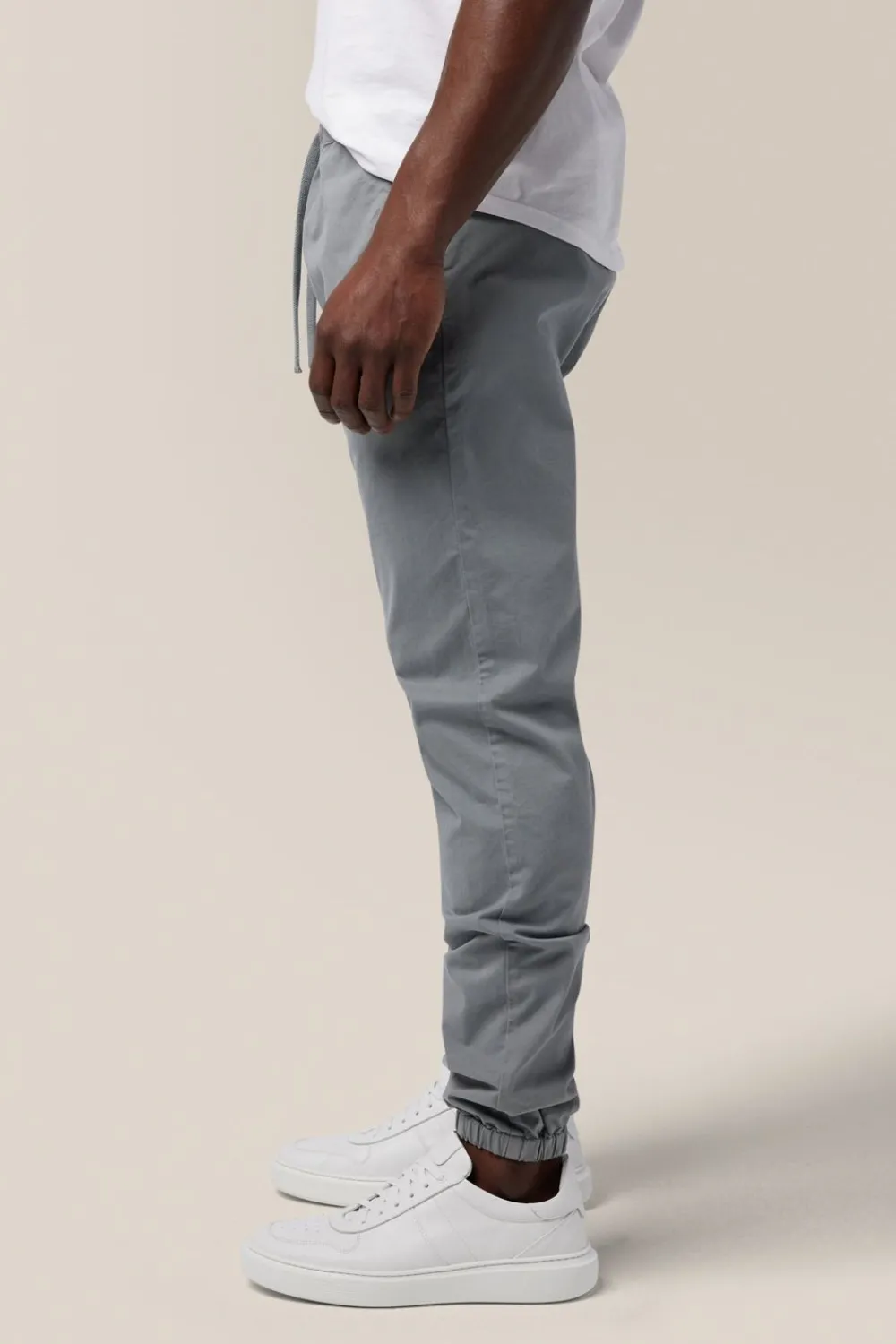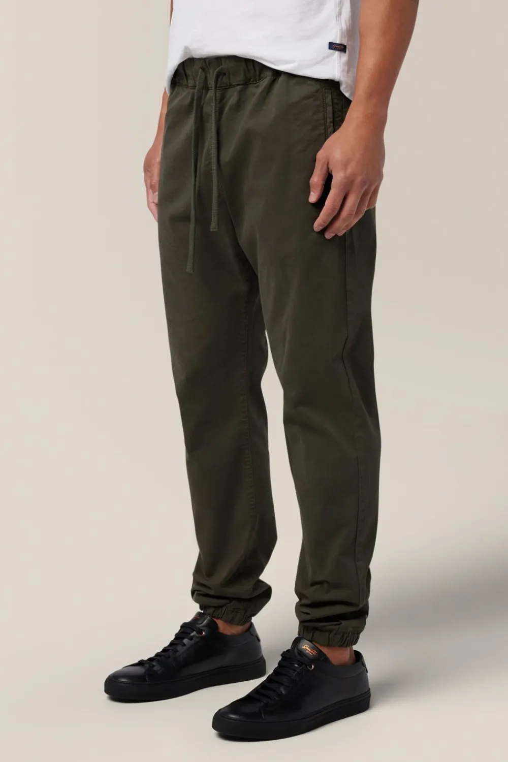 Casual Jogger Pant In Italian Stretch Cotton Twill With Elasticated Cuffs And Drawstring Waistband.