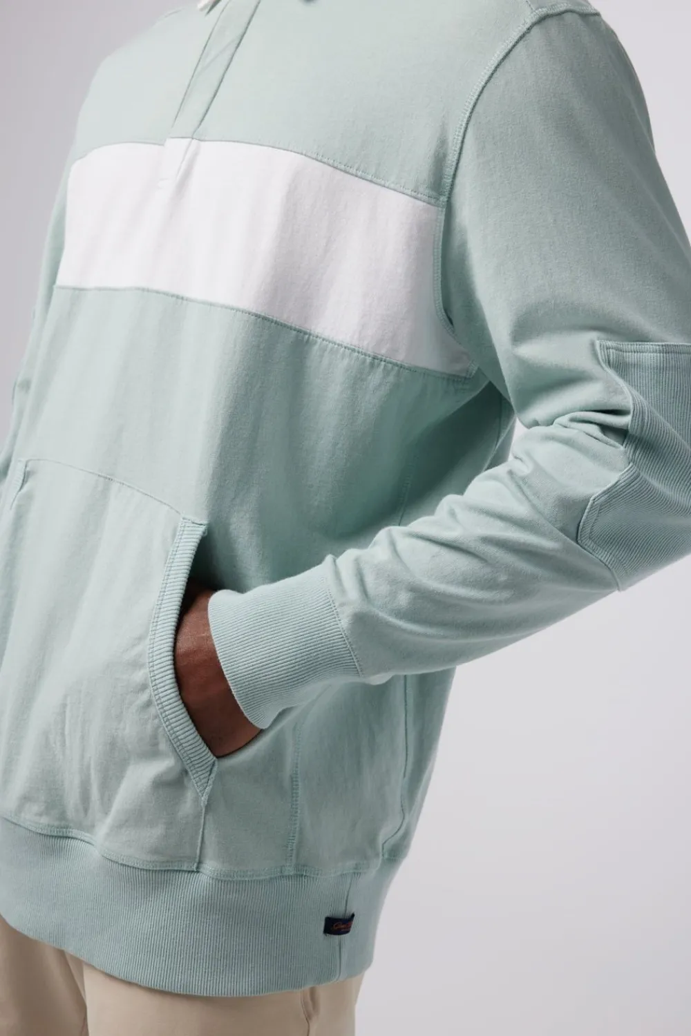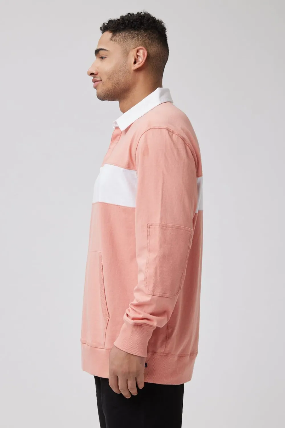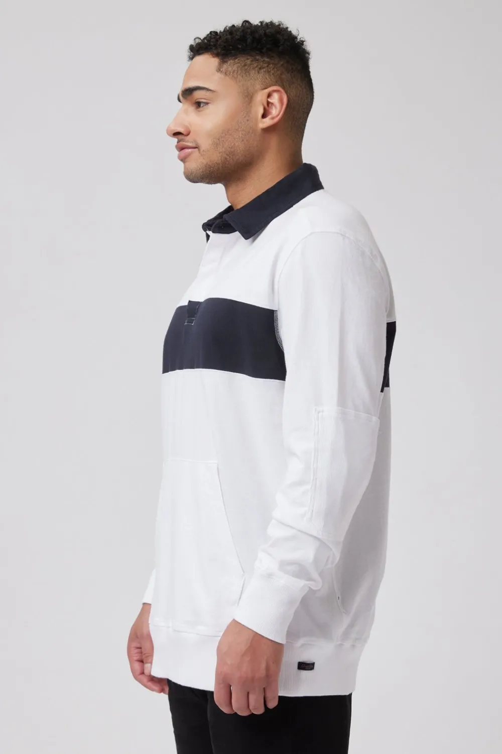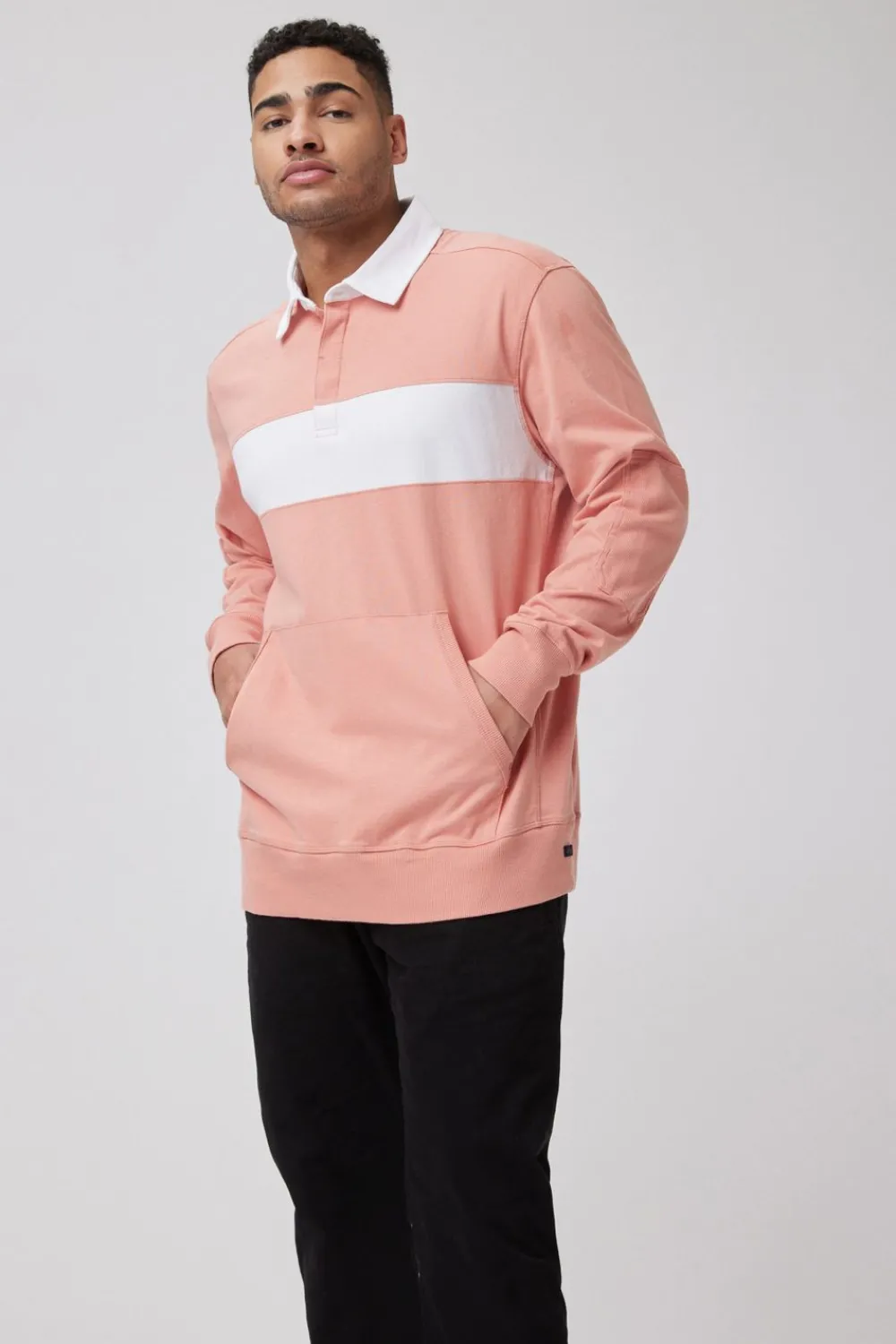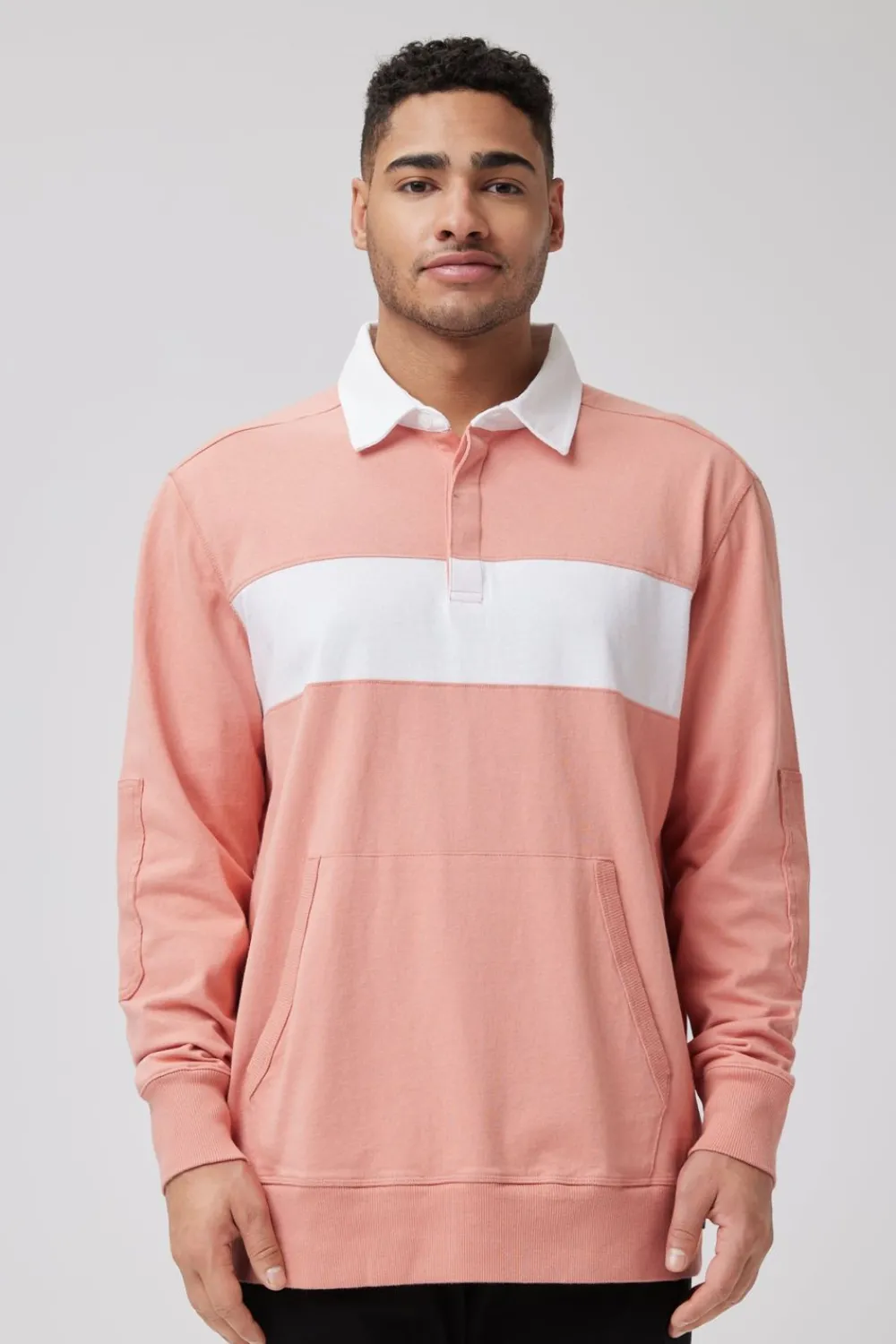 A Sporty Long Sleeve Polo Shirt In Ethically Sourced, Finely Textured, Super Natural Cotton Jersey With Athletic-Inspired Rugby Stripe And Contrasting Collar. Luxurious Sartorial Details Include Ribbed Elbow Patches, Kangaroo Pockets, And Ribbed Hem And Cuffs.
