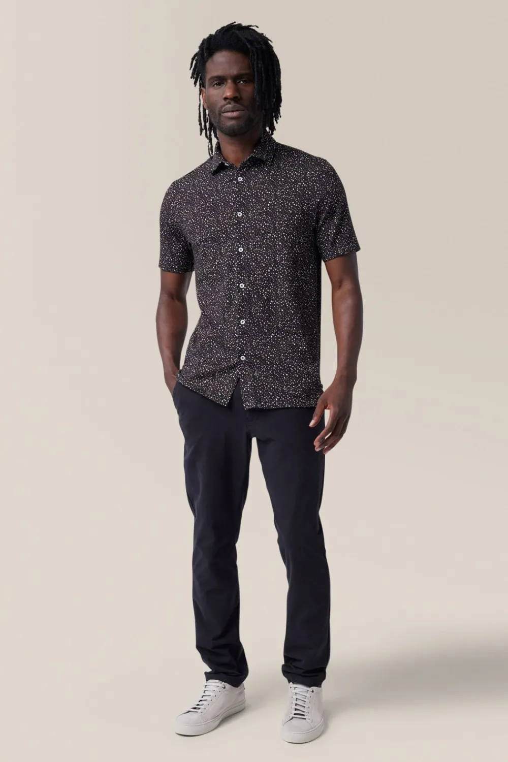Versatile Short Sleeve Button Down Shirt In Stretch Woven Organic Cotton With A Relaxed, Casual Fit. A Soft Spread Collar And Pearl Buttons Add An Easy, Polished Look.