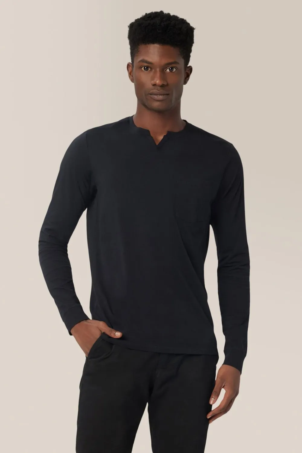 Why It’S GoodA Notched, V-Neck Collar And Wrap-Around Back Yoke Give This Slim Fit, Long Sleeve Tee In Soft Cotton Jerse…