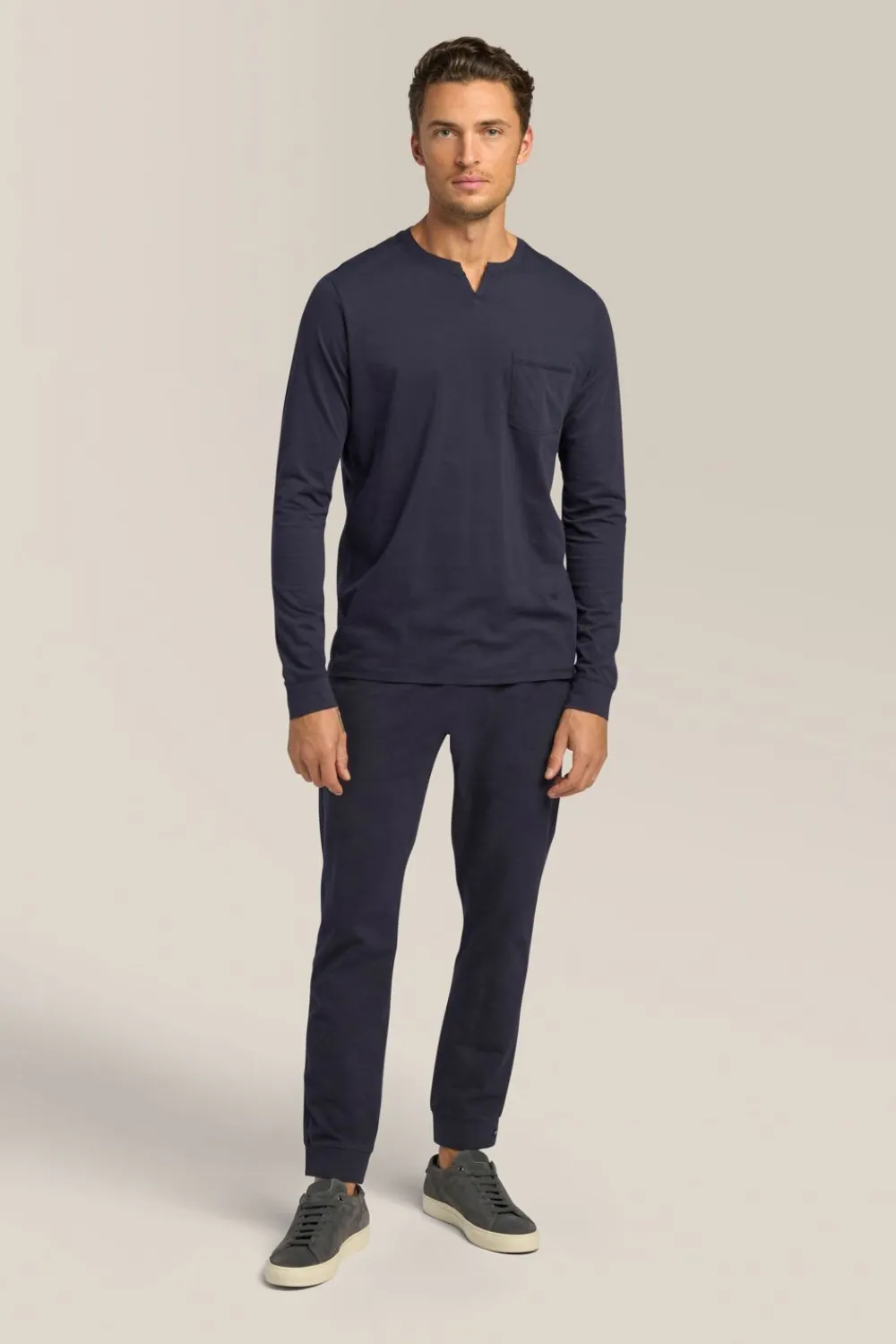 A Notched, V-Neck Collar And Wrap-Around Back Yoke Give This Slim Fit, Long Sleeve Tee In Soft Cotton Jersey An Easy, Athletic Feel.