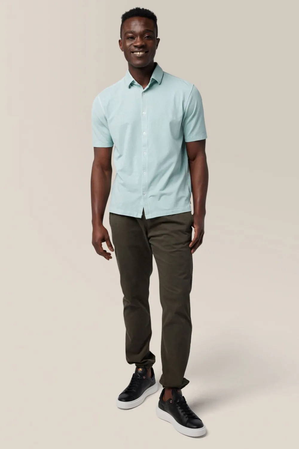 ElevatE A Wardrobe Cornerstone With A Relaxed Yet Polished Fit And Flexible Jersey Made With Responsibly Sourced Cotton. OpTimAl Comfort, Wear-Anywhere Versatility.
