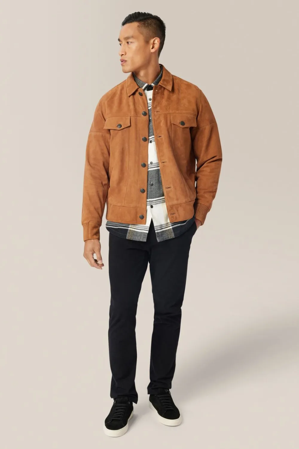 The Perfect Jacket To Finish Any Look. The Classic Jean Jacket Is Upgraded In Soft, Velvety Traceable Suede. With Front Flap Pockets And Engraved Metal Shank Buttons.